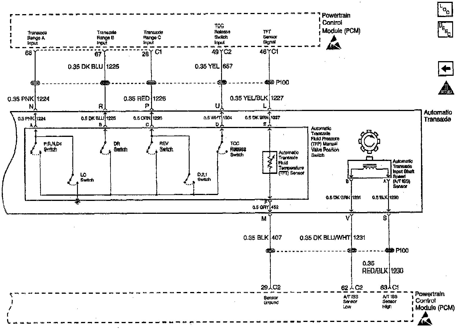 TFP Valve Position Switch, TFT Sensor, and A/T ISS Sensor
