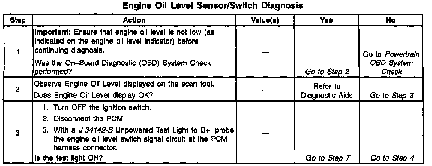 Engine Oil Level Sensor/Switch Diagnosis