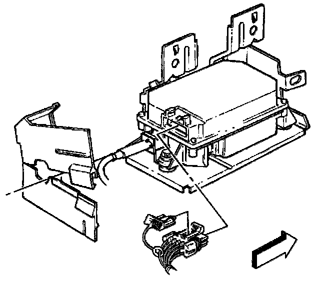 8. Remove the cruise control module and bracket from the left side engine compartment inner rail.