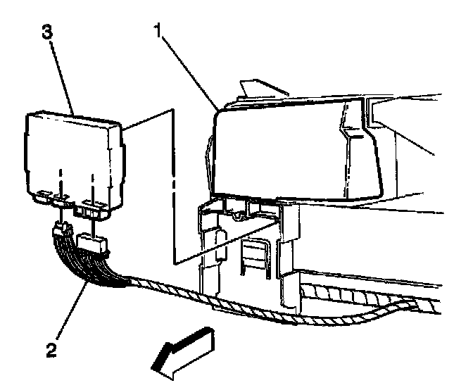 3. Unsnap the BCM (3) from the HVAC duct bracket (1).