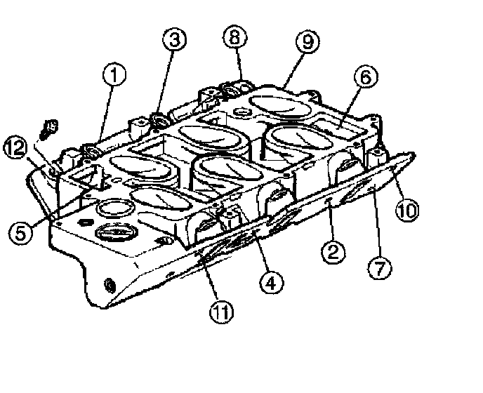 Tighten the lower manifold bolts in sequence as shown to