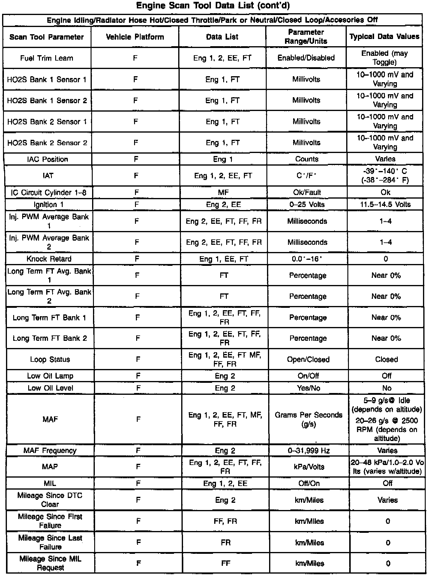 The column labeled Data List indicates where a parameter can be located on the scan tool. Refer to the scan tool operating manual for the exact locations of the data lists. The following is a description of each term listed: