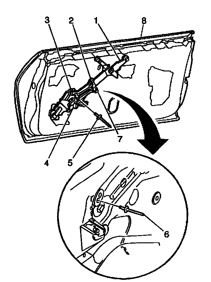 9. Remove window regulator with regulator motor attached if equipped through rear access hole.