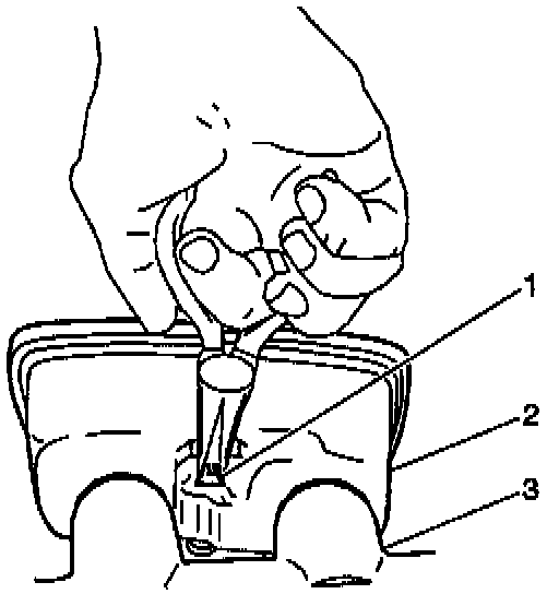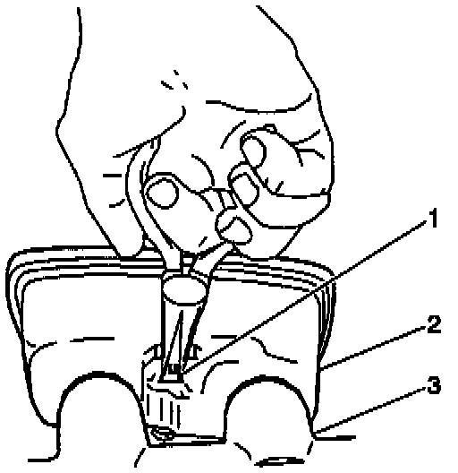 1. Connect the fluid level switch into the master cylinder reservoir until the locking tabs (3) snap into place.