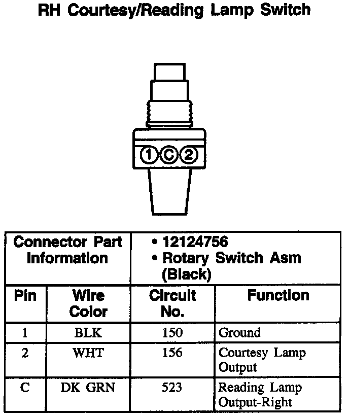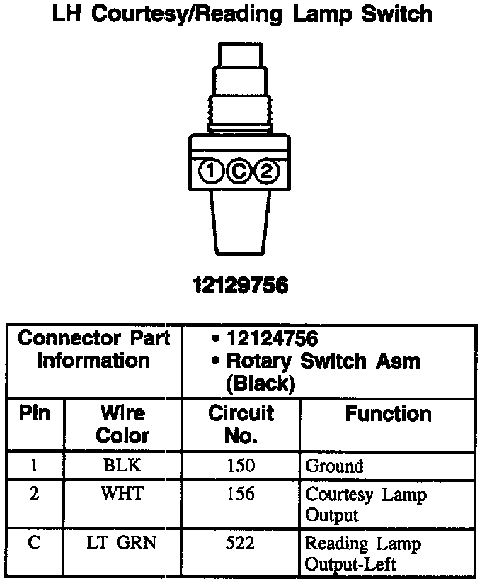 LH Courtesy/Reading Lamp Switch: