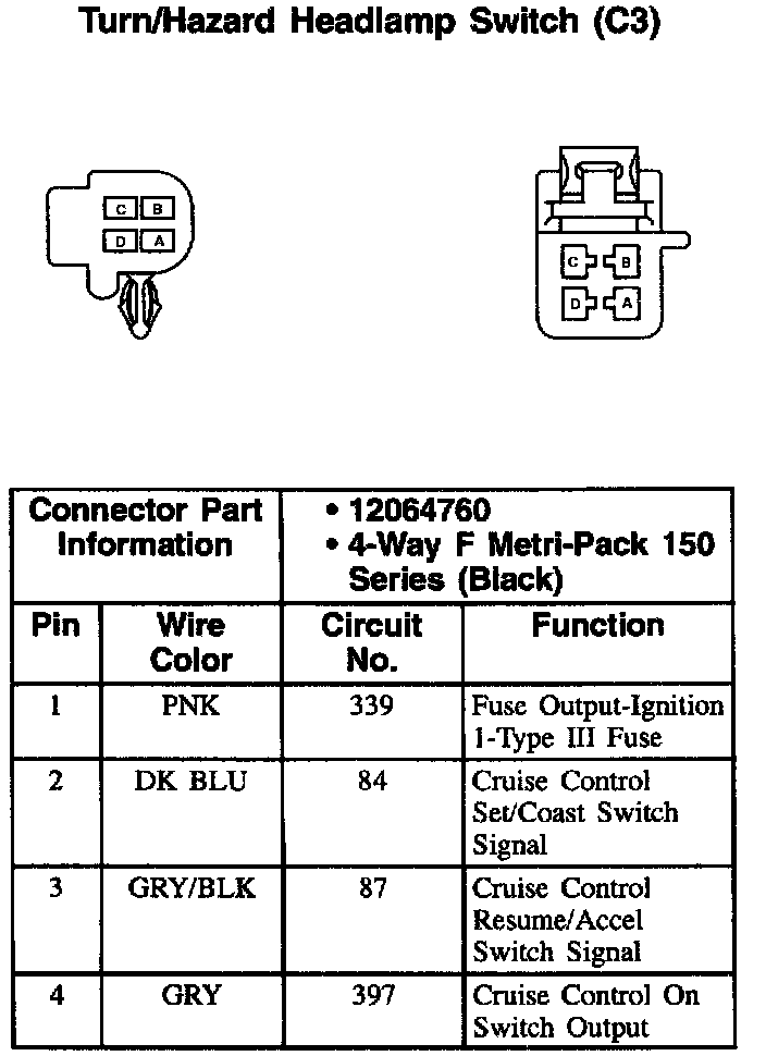 Turn/Hazard Headlamp Switch (C3):