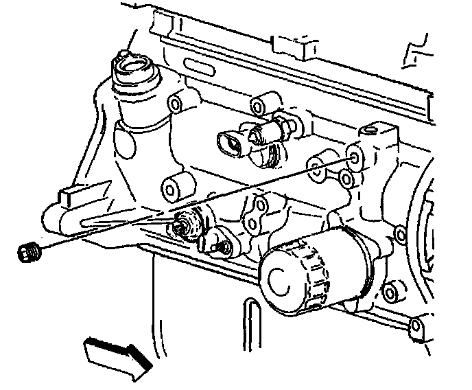 9. Remove the front oil passage plug and discard.