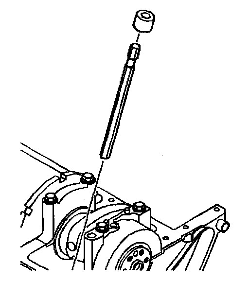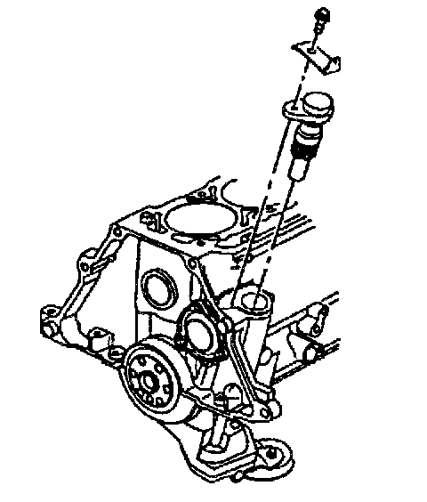 5. Install the bolt that attaches the oil pump to the rear main bearing cap.