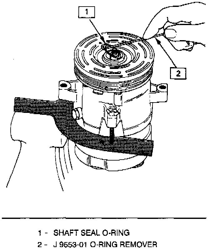 7. Remove and discard the seal O-ring from the compressor neck using O-ring remover J 9553-01.