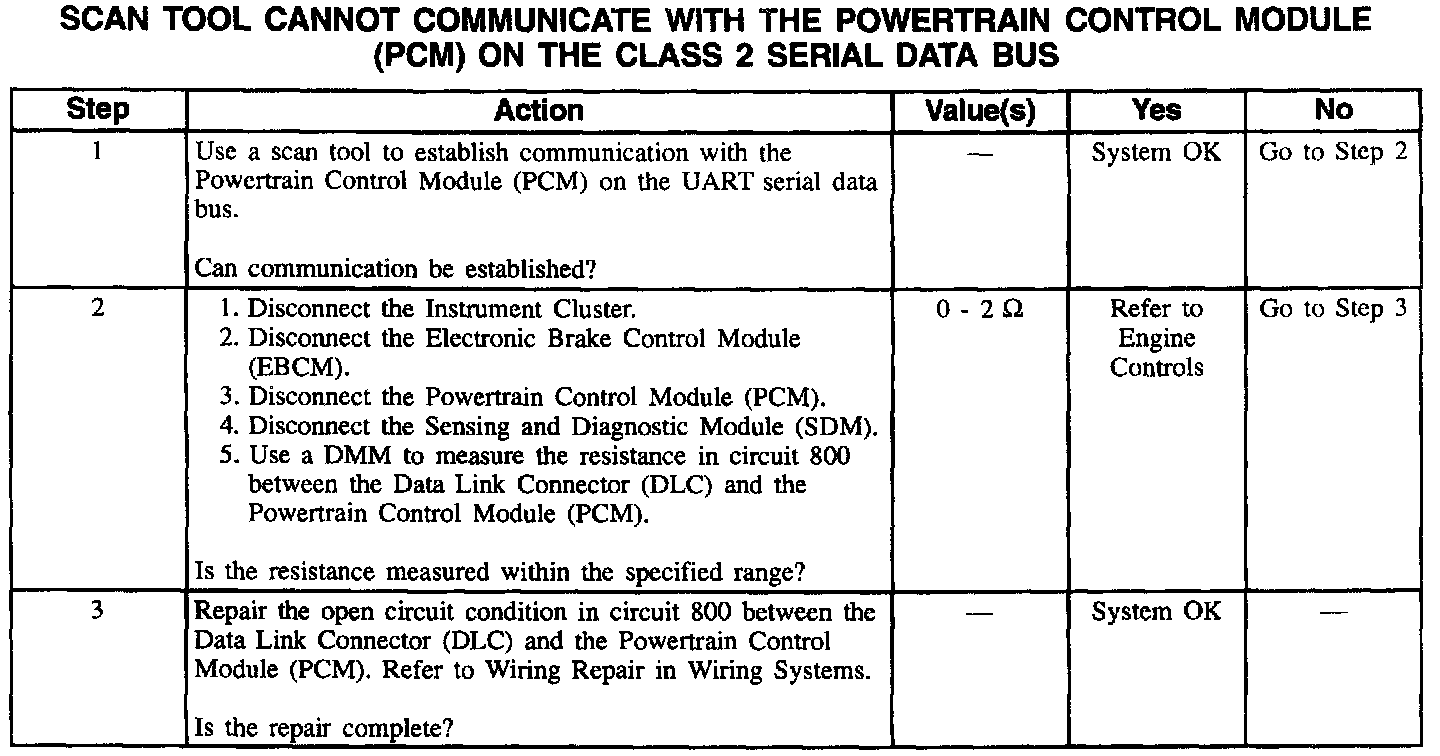Scan Tool Cannot Communicate With The PCM On The Class 2 Serial Data Bus: