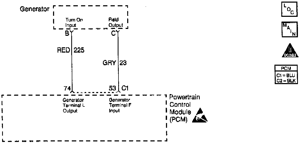 14. The PCM supplies a voltage to the generator. If voltage is available to the generator at this terminal, then the PCM and wiring are OK.