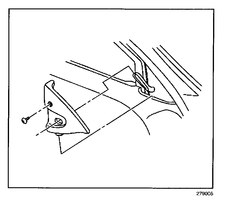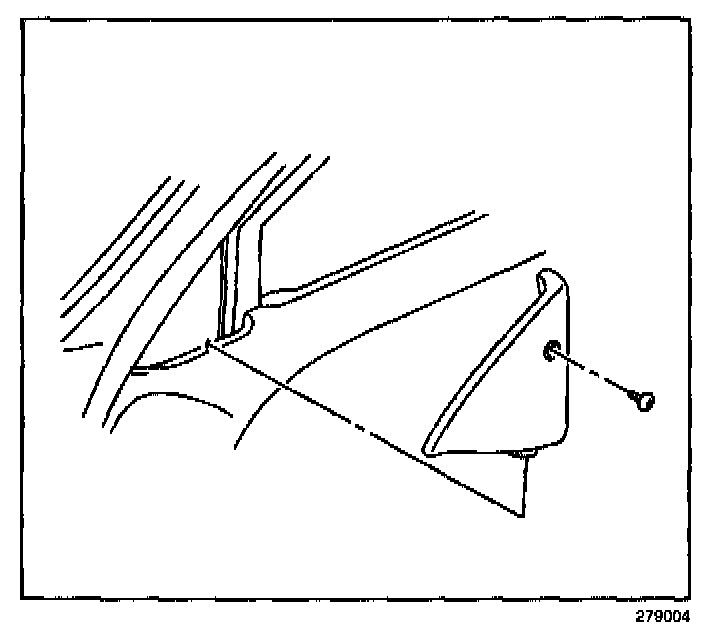 2. Remove the finish screw that retains the remote control mirror bezel to the front door upper trim.