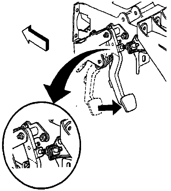 3. Adjust the cruise control release switch. Grasp the clutch pedal and pull fully rearward against the pedal stop; audible clicks may be heard as the switch moves into the adjusted position.
