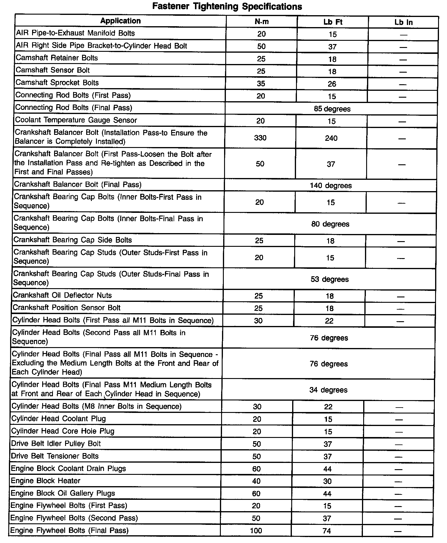 Fastener Tightening Specifications - Engine