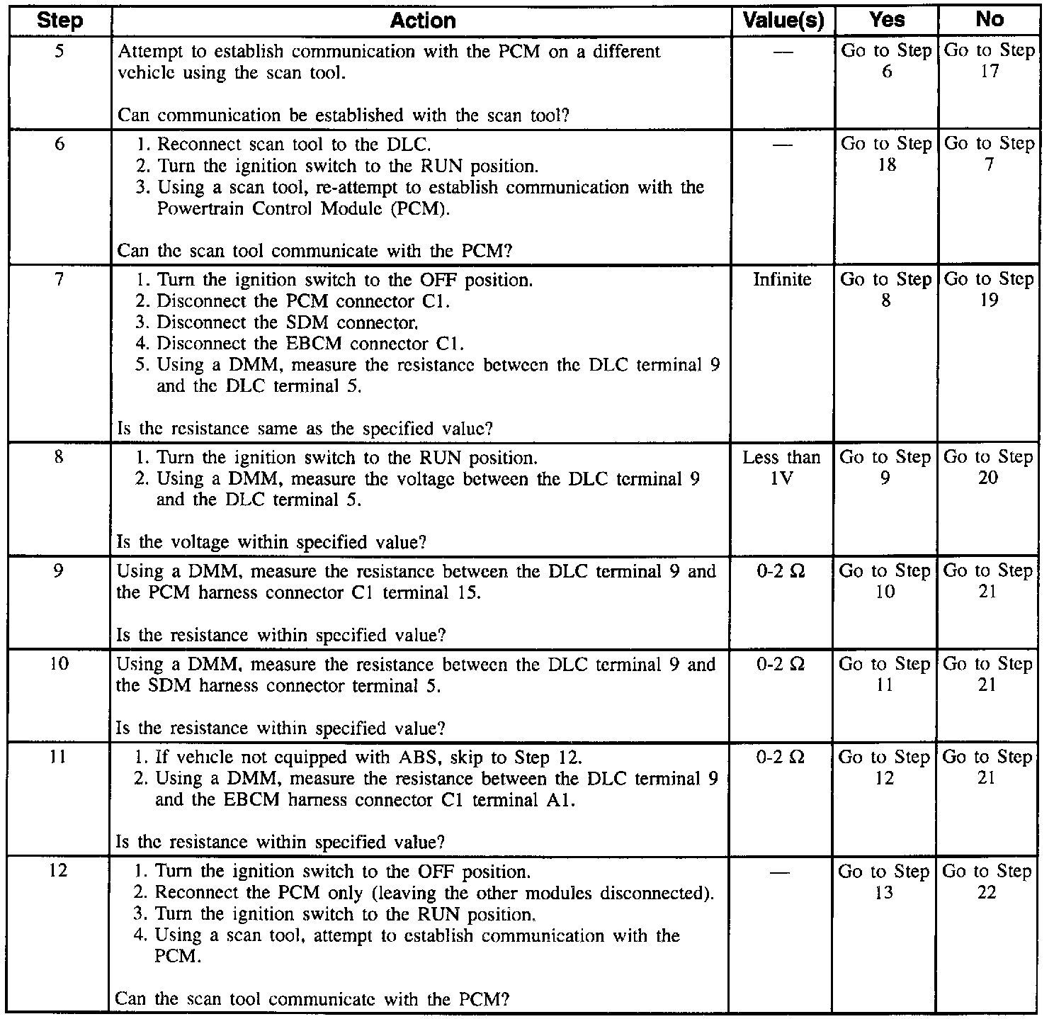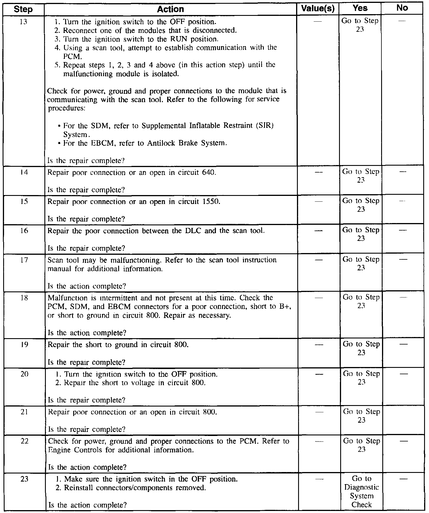 Table 1 Scan Tool Doesn't Communicate W/The UART Serial Data Link (Part 2 Of 3):