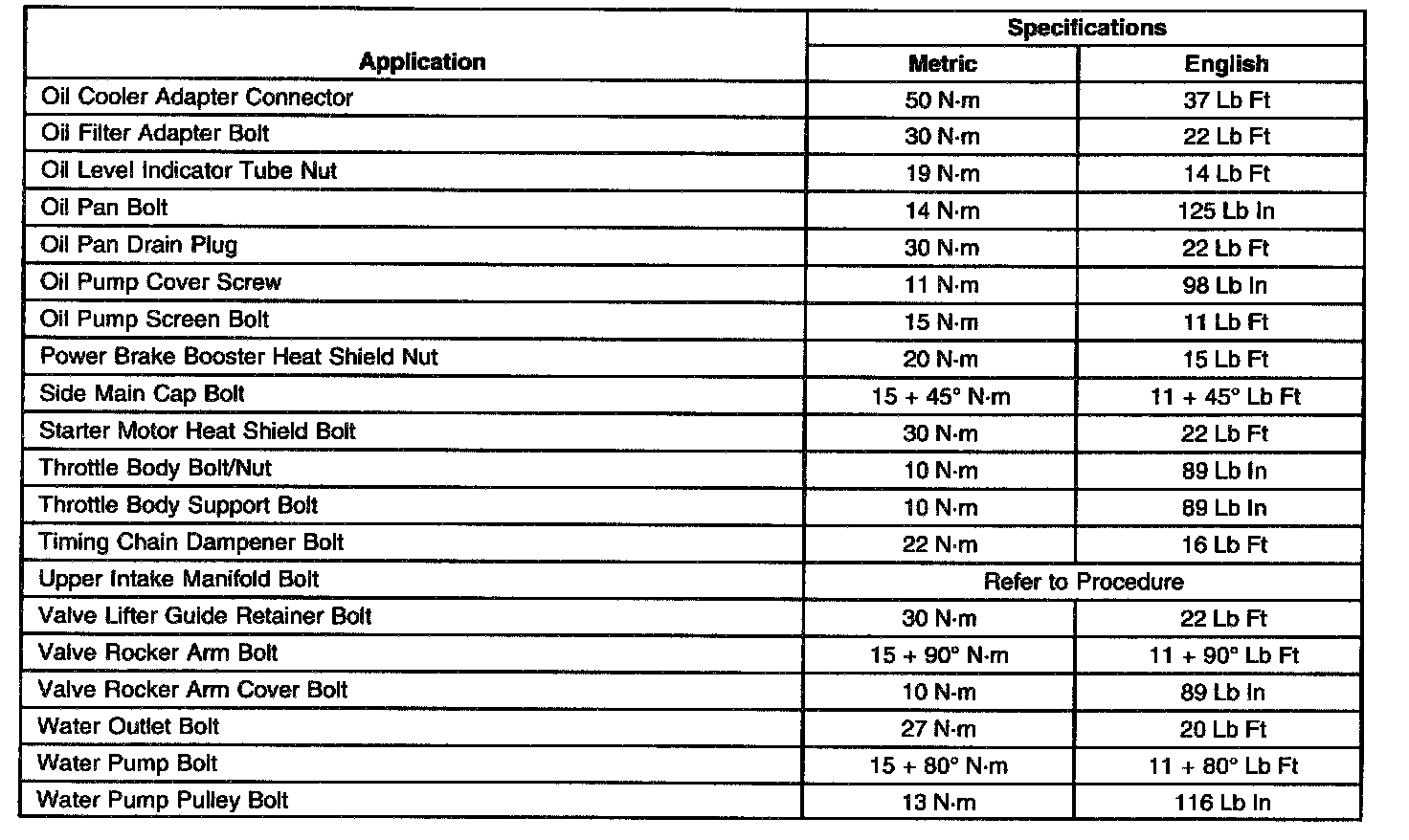 Fastener Tightening Specifications