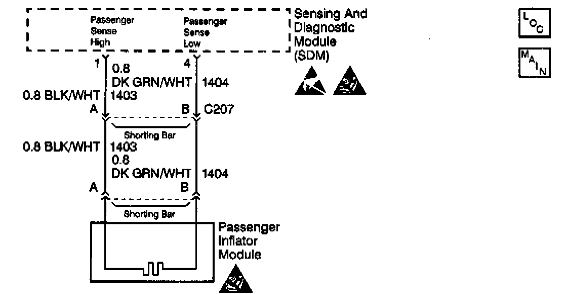 ^ The passenger deployment loop resistance is less than 1.4 ohms. The passenger deployment loop consists of the following components: