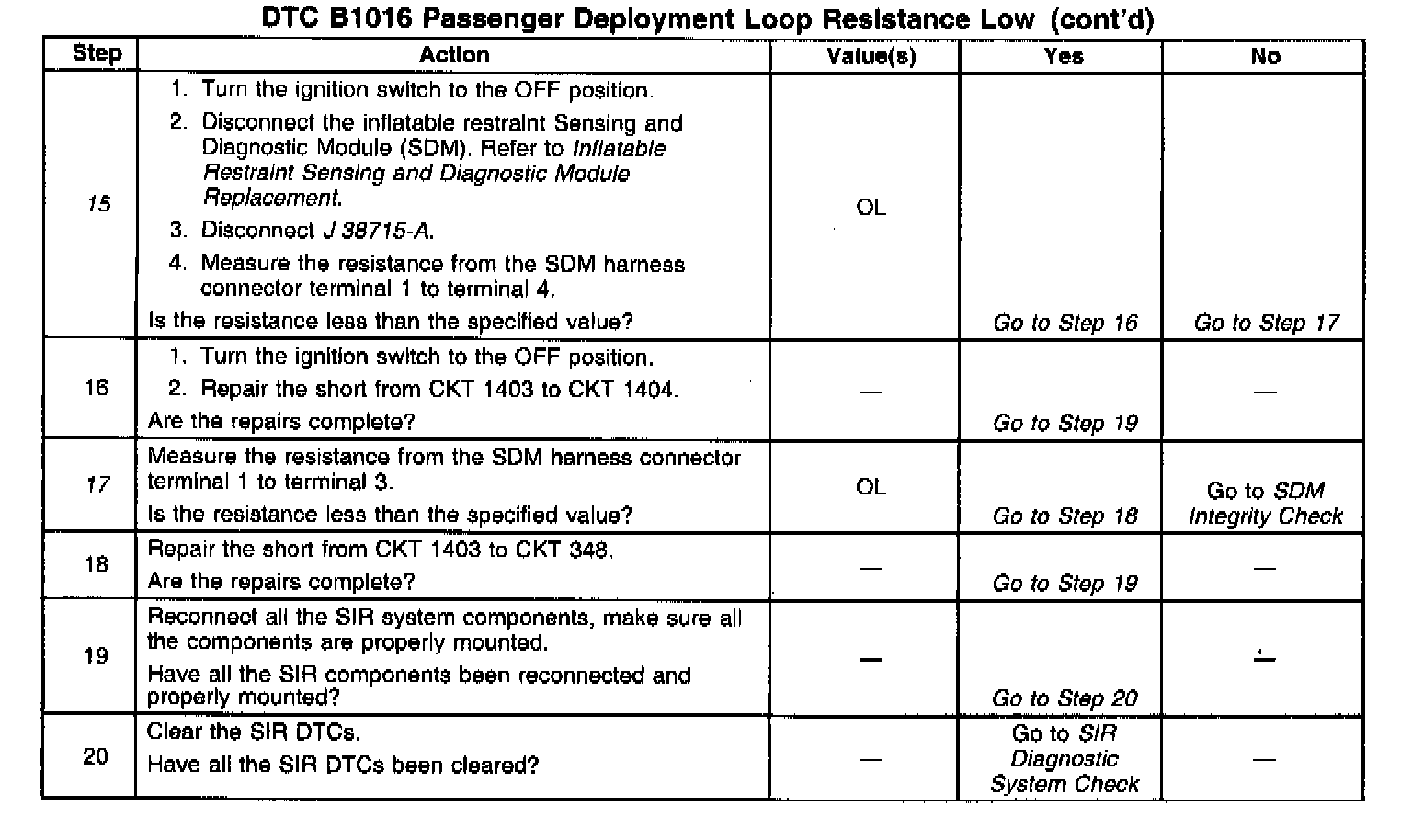 ^ Measures the voltage difference between Passenger Side High and Passenger Side Low. Calculates the resistance of the passenger deployment loop using the measured voltage.