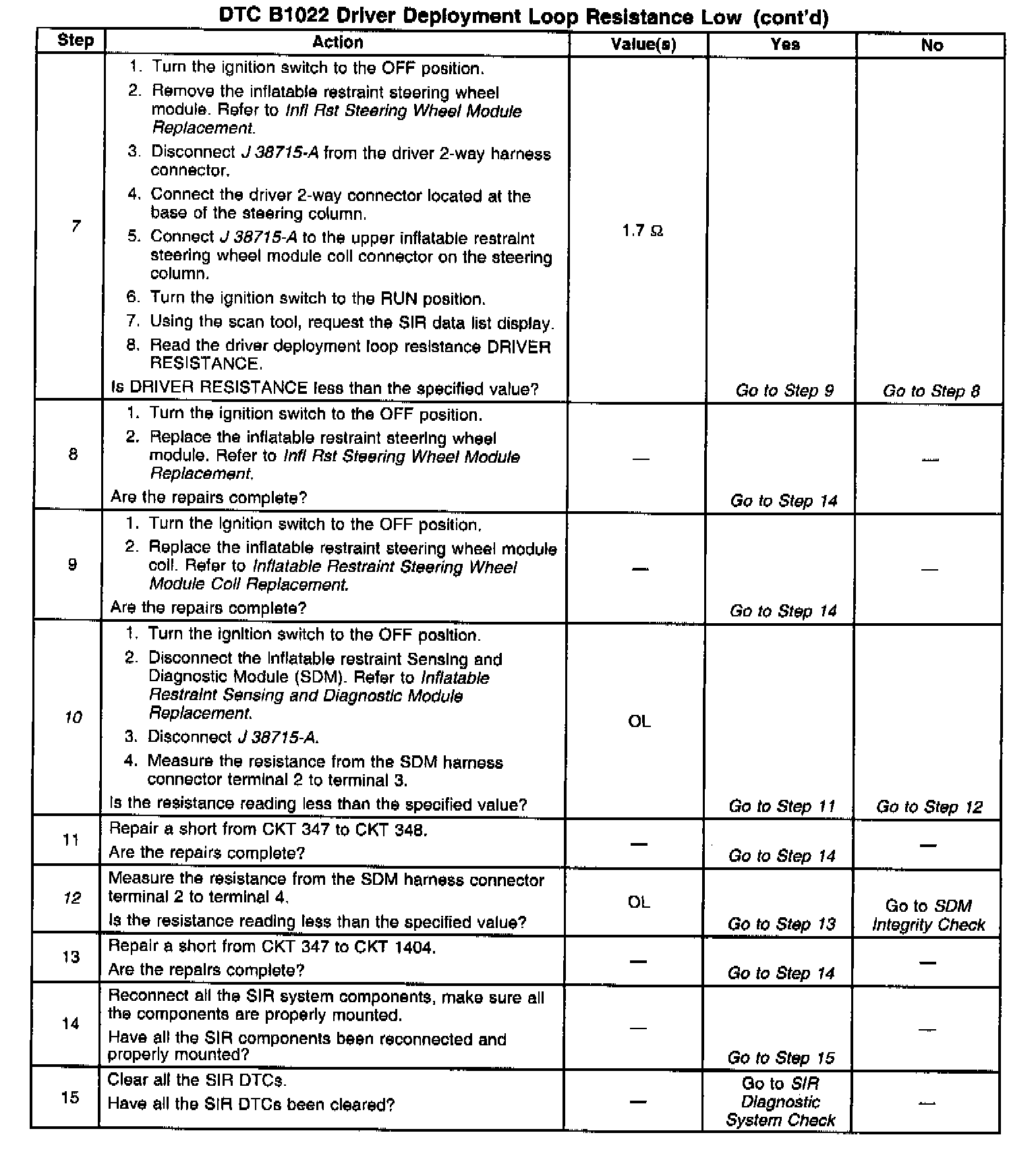 7. This test determines whether the malfunction is due to the Inflatable Restraint Steering Wheel Module or the module coil.