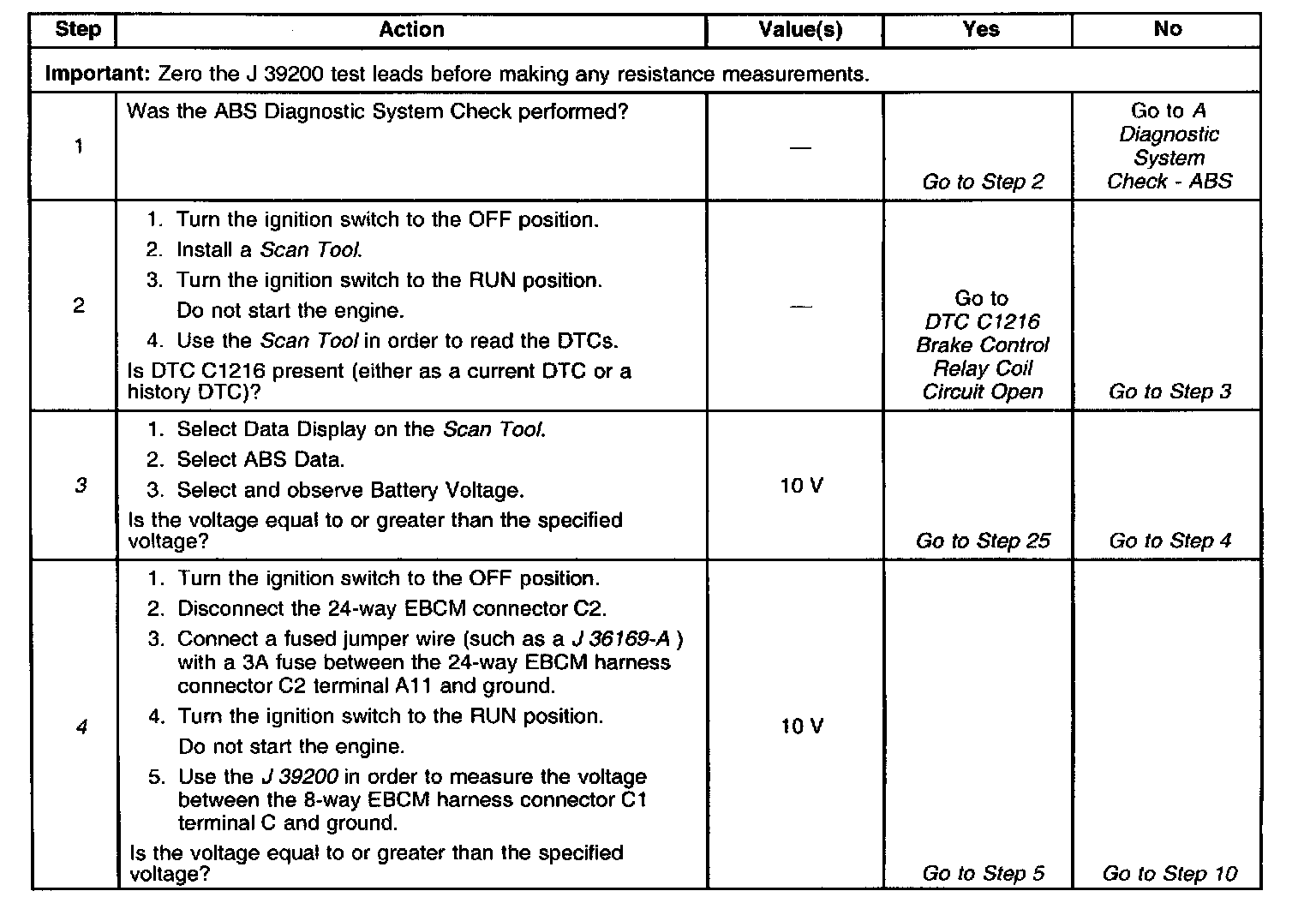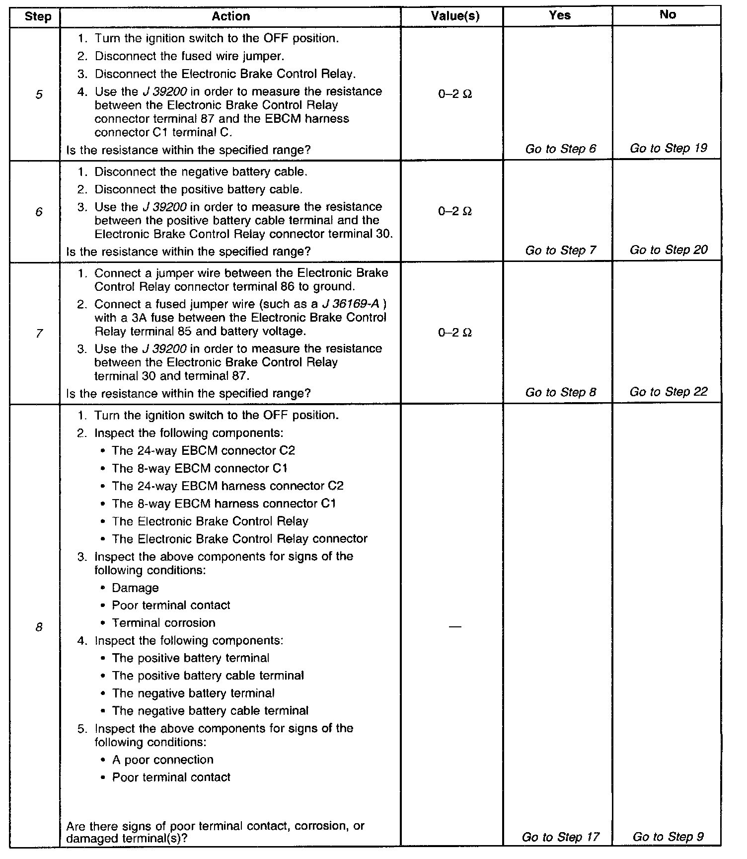 15. This test checks for excessive resistance in the electronic brake control relay control circuit between the relay and the EBCM.