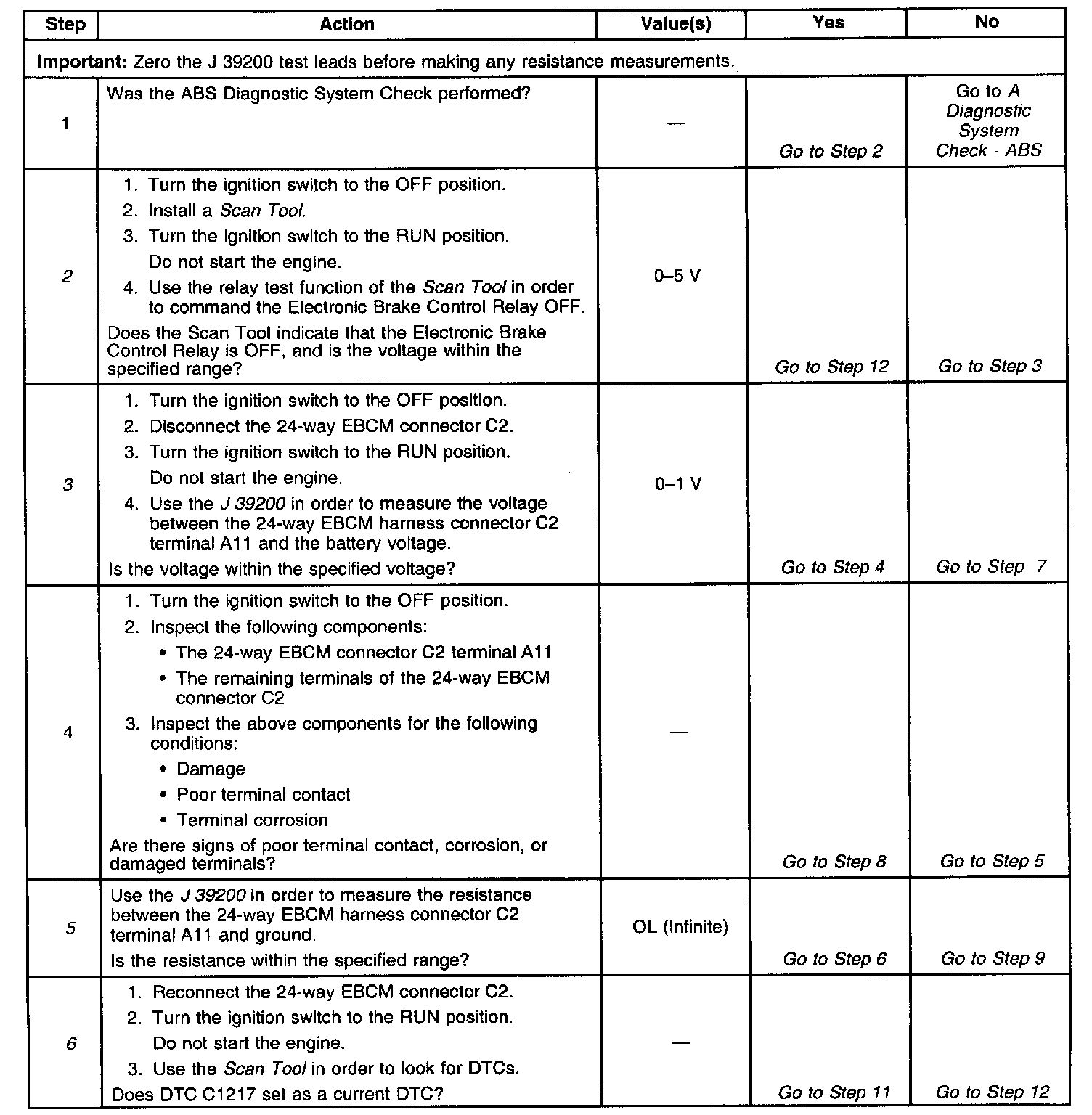 DTC C1217 can set before the EBCM commands the Electronic Brake Control Relay on.