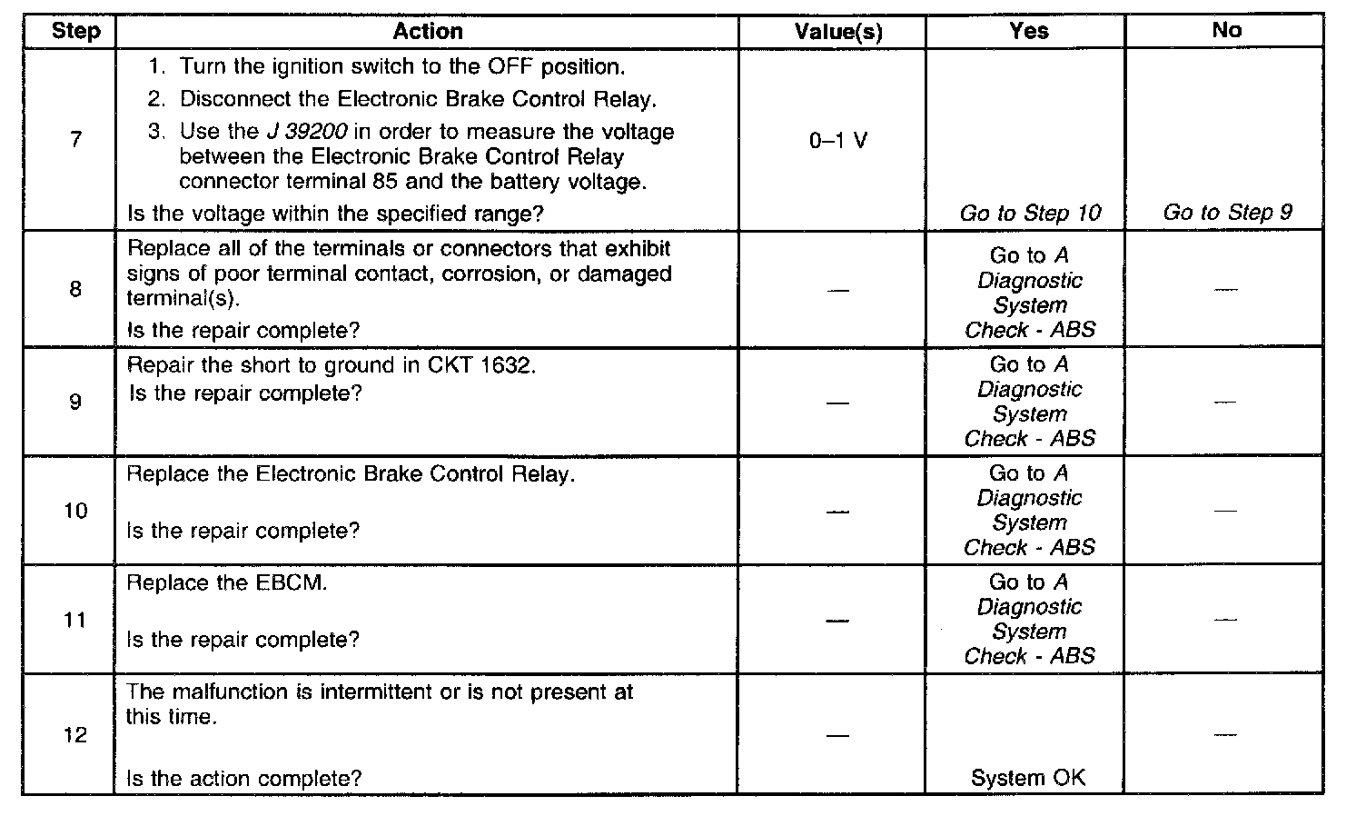 2. This test determines it the EBCM is capable of controlling the electronic brake control relay as commanded.