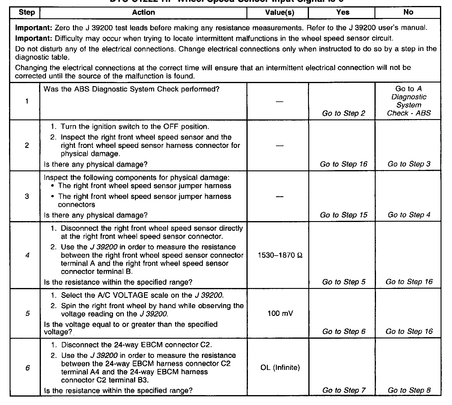 6. This test checks for a short between the wheel speed sensor high and low circuits.