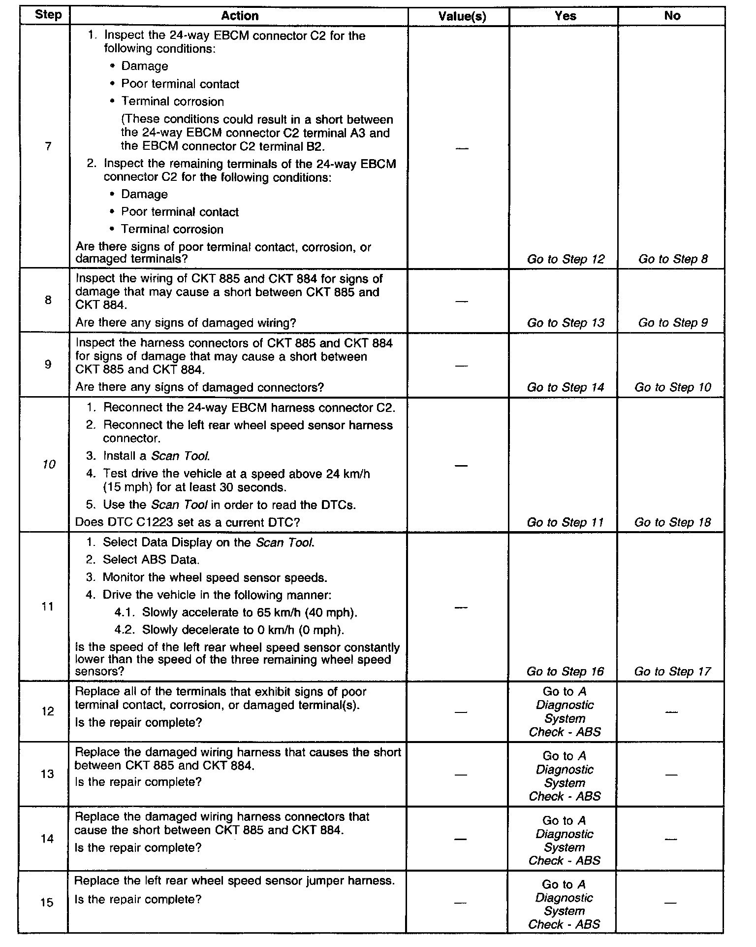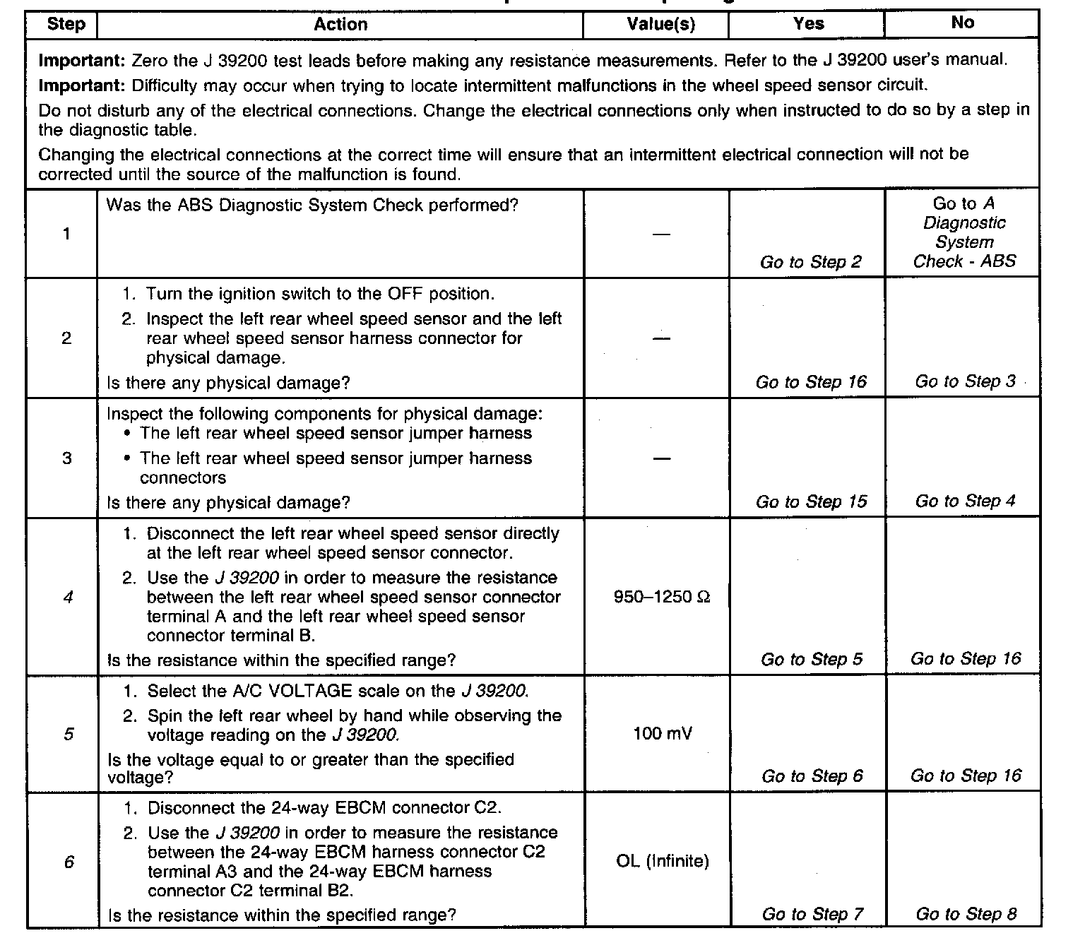 6. This test checks for a short between the wheel speed sensor high and low circuits.