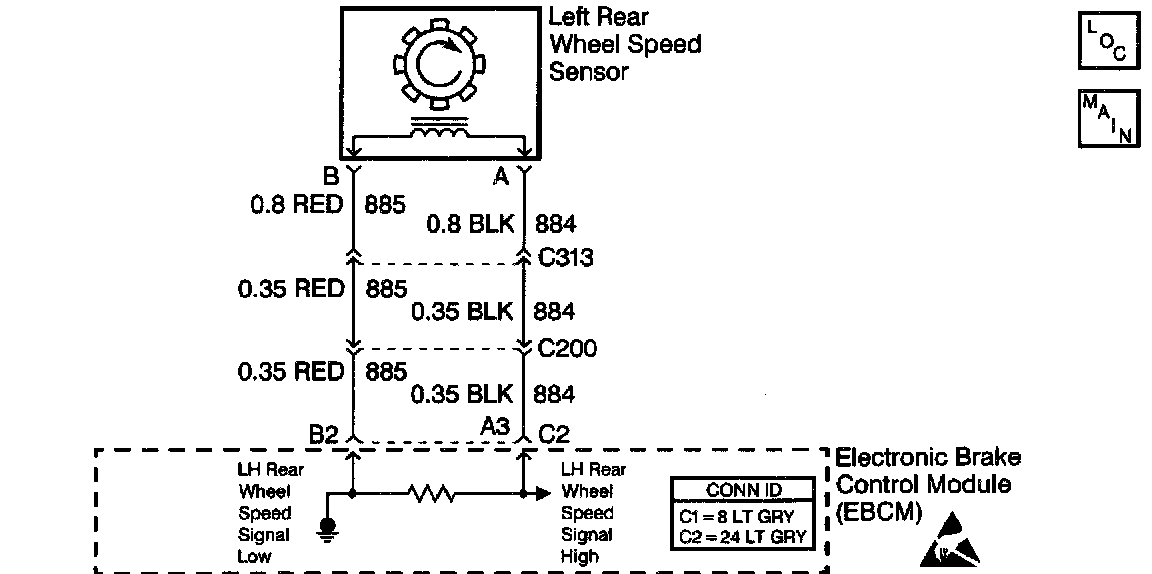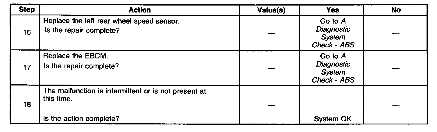 ^ The left rear wheel speed sensor input signal equals zero.