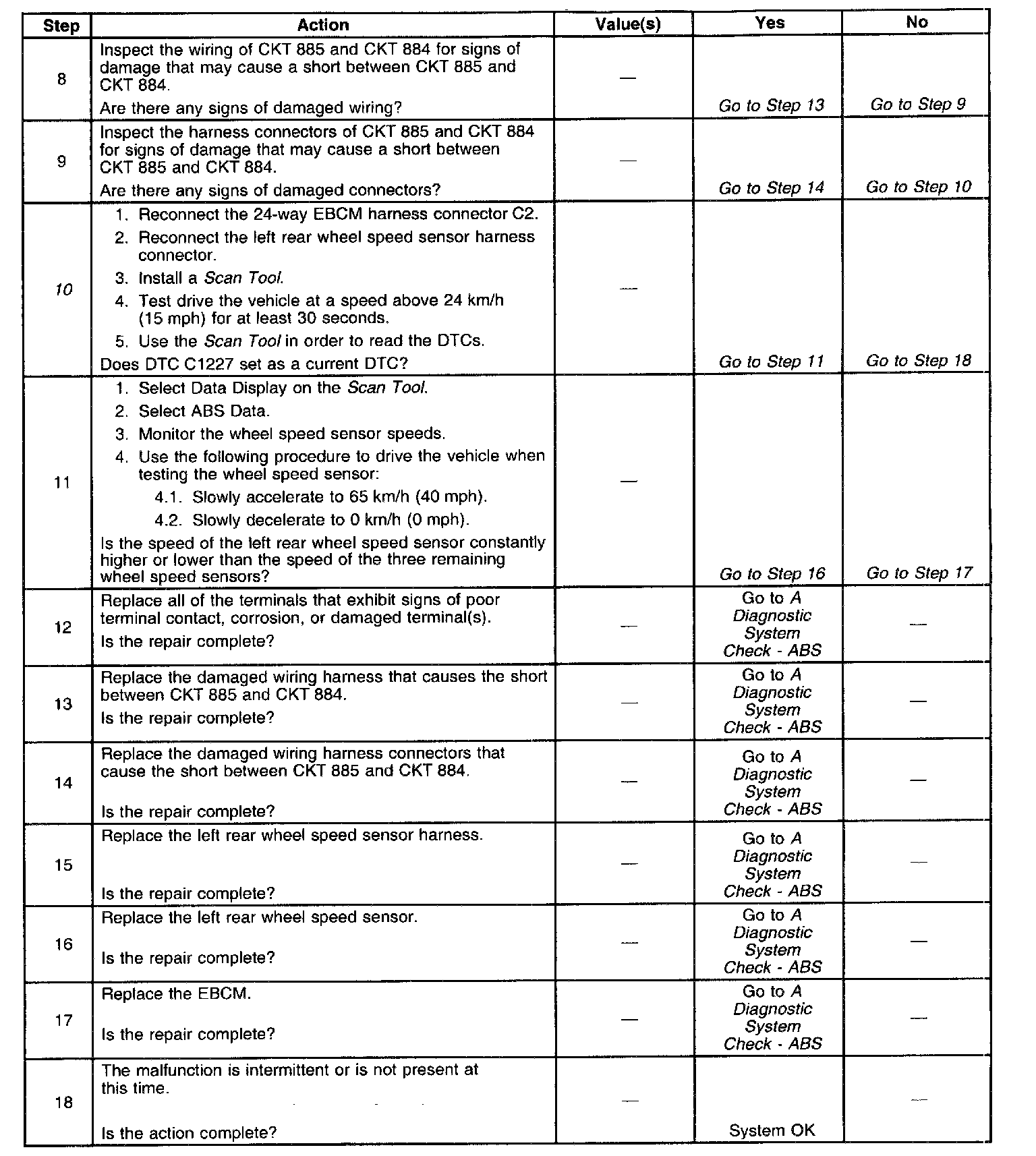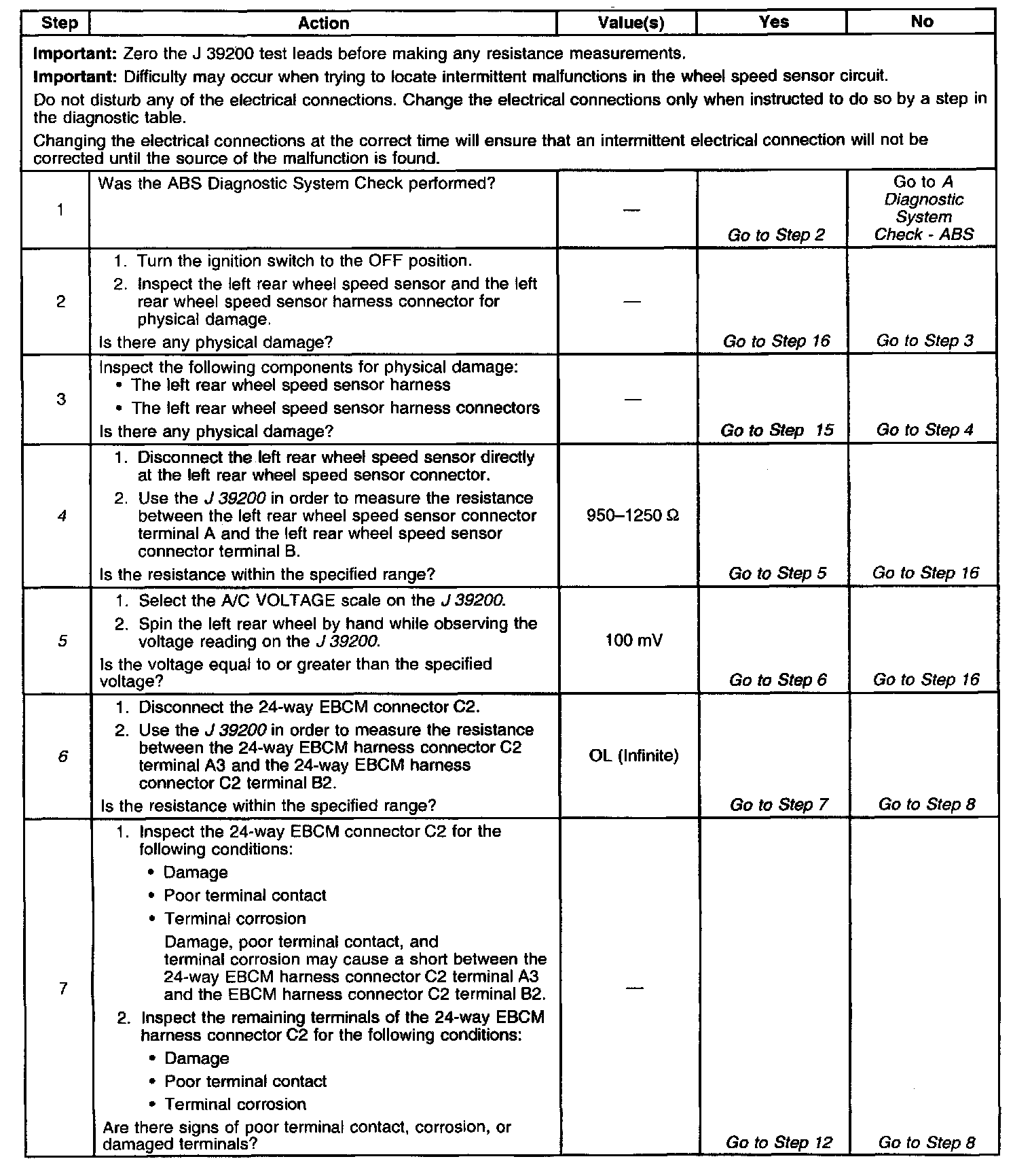 6. This test checks for a short between the wheel speed sensor high and low circuits.