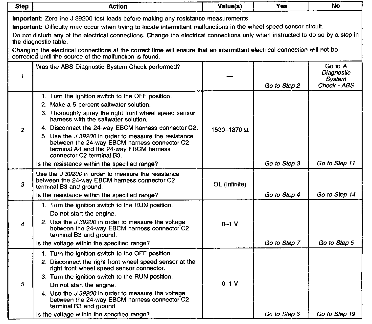 2. This test checks the wheel speed sensor circuitry for proper resistance values at the EBCM.