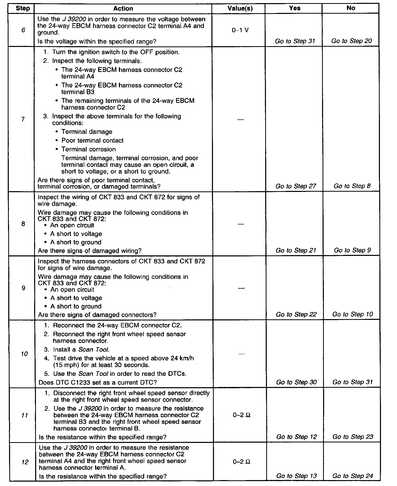 12. This test checks for an open or high resistance in the wheel speed sensor signal high circuit.