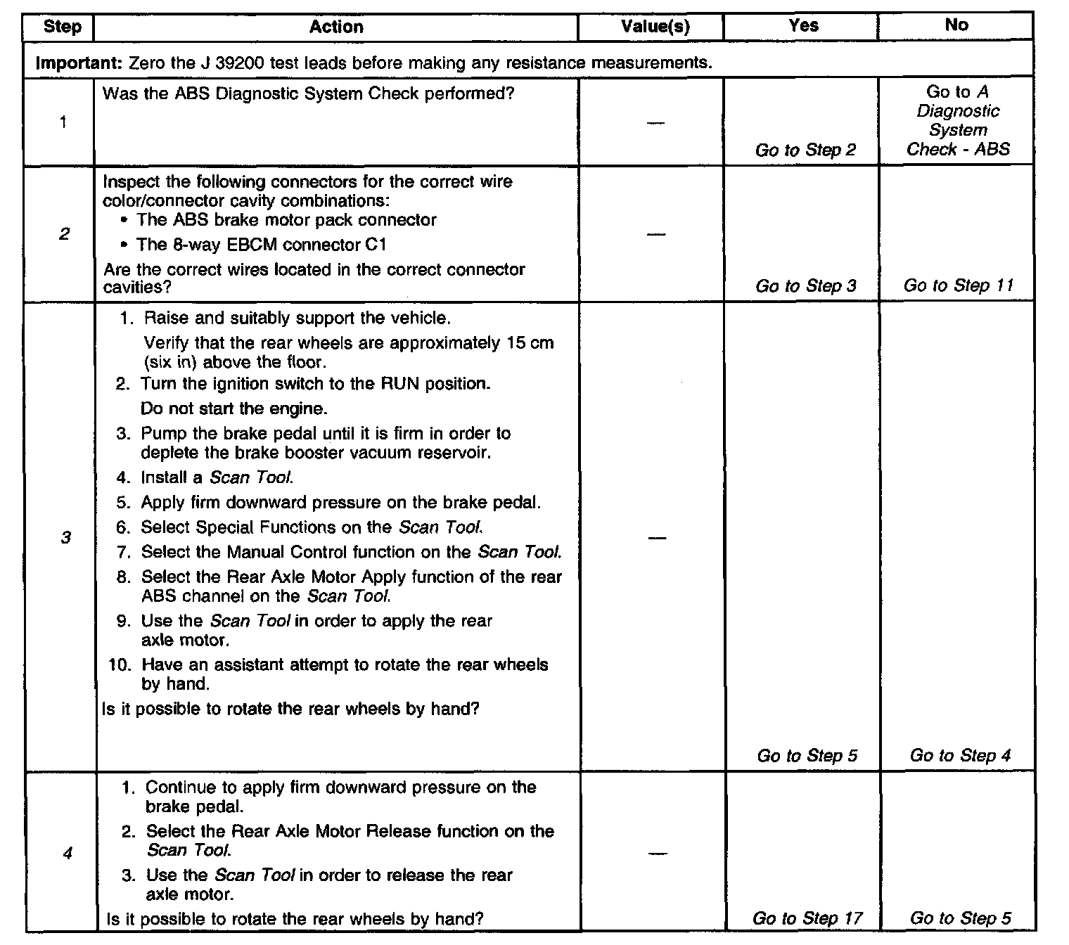 3. This test checks the ability of the motor to move by releasing hydraulic pressure to the wheel cylinders.