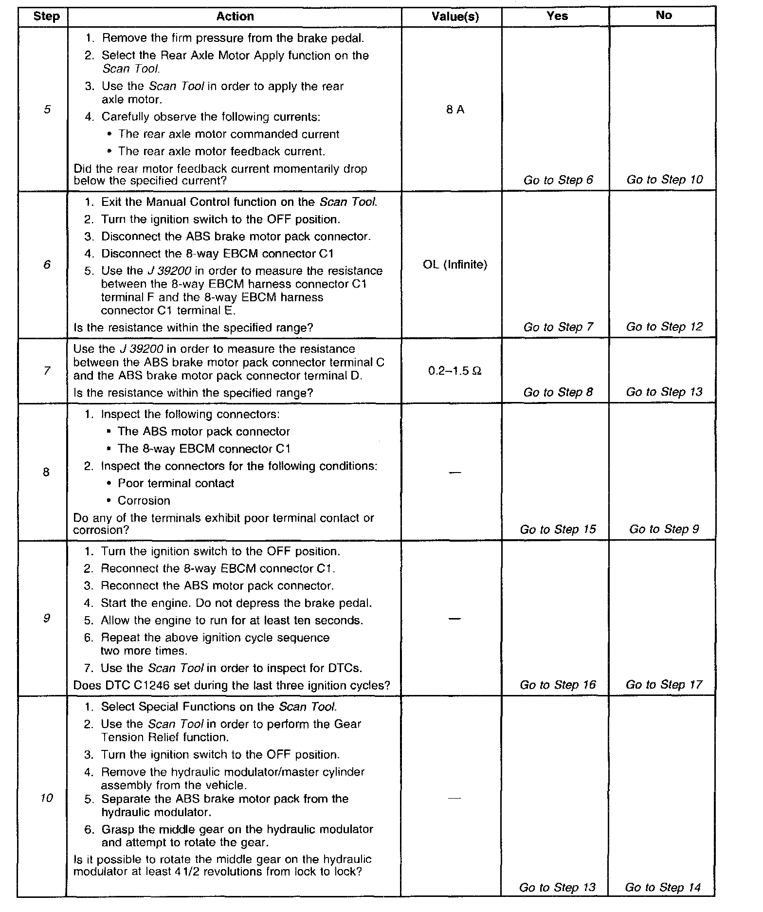 Use the enhanced diagnostic function of the Scan Tool in order to measure the frequency of the malfunction. DTC C1246 may set after modulator disassembly if the modulator pistons are positioned at the bottom of the modulator piston bore. Depending on the frequency of the malfunction, a physical inspection of the mechanical parts suspected of causing the malfunction may be necessary.