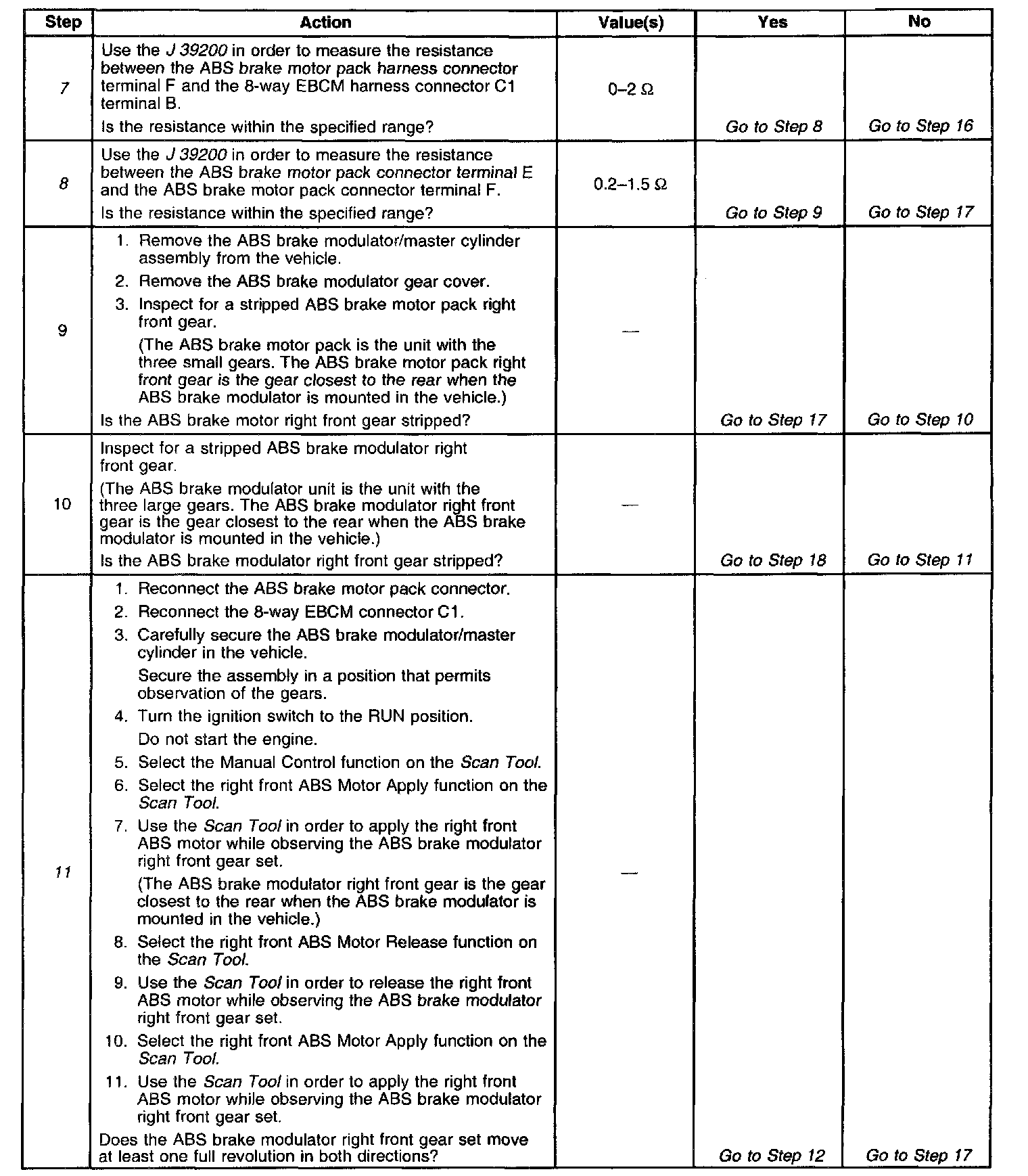 7. This test checks for excessive resistance in the right front motor low circuit.