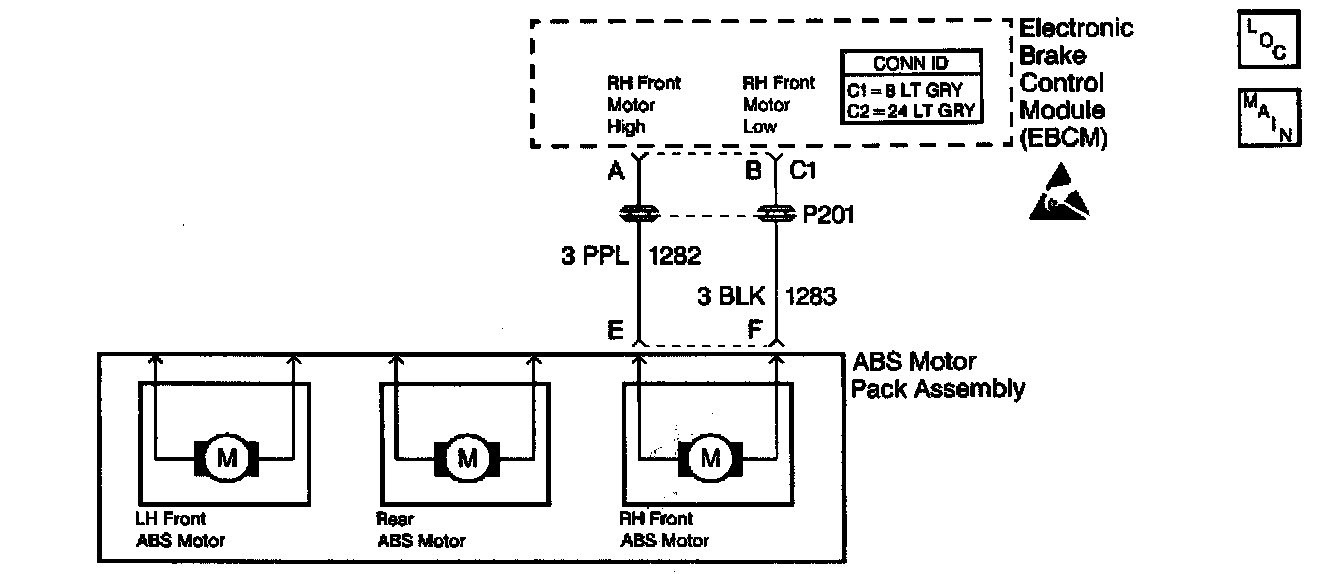 DTC C1262 can set anytime. A malfunction exists if the EBCM detects an out of range voltage on either of the right front ABS motor circuits.