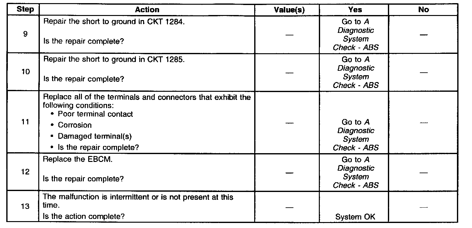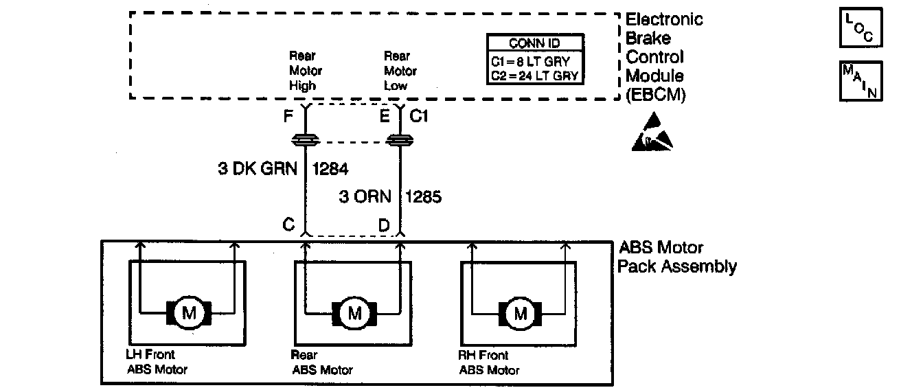 A malfunction exists if the EBCM detects an out of range voltage on either of the rear ABS motor circuits. The out of range voltage on either circuit indicates an open circuit exists.