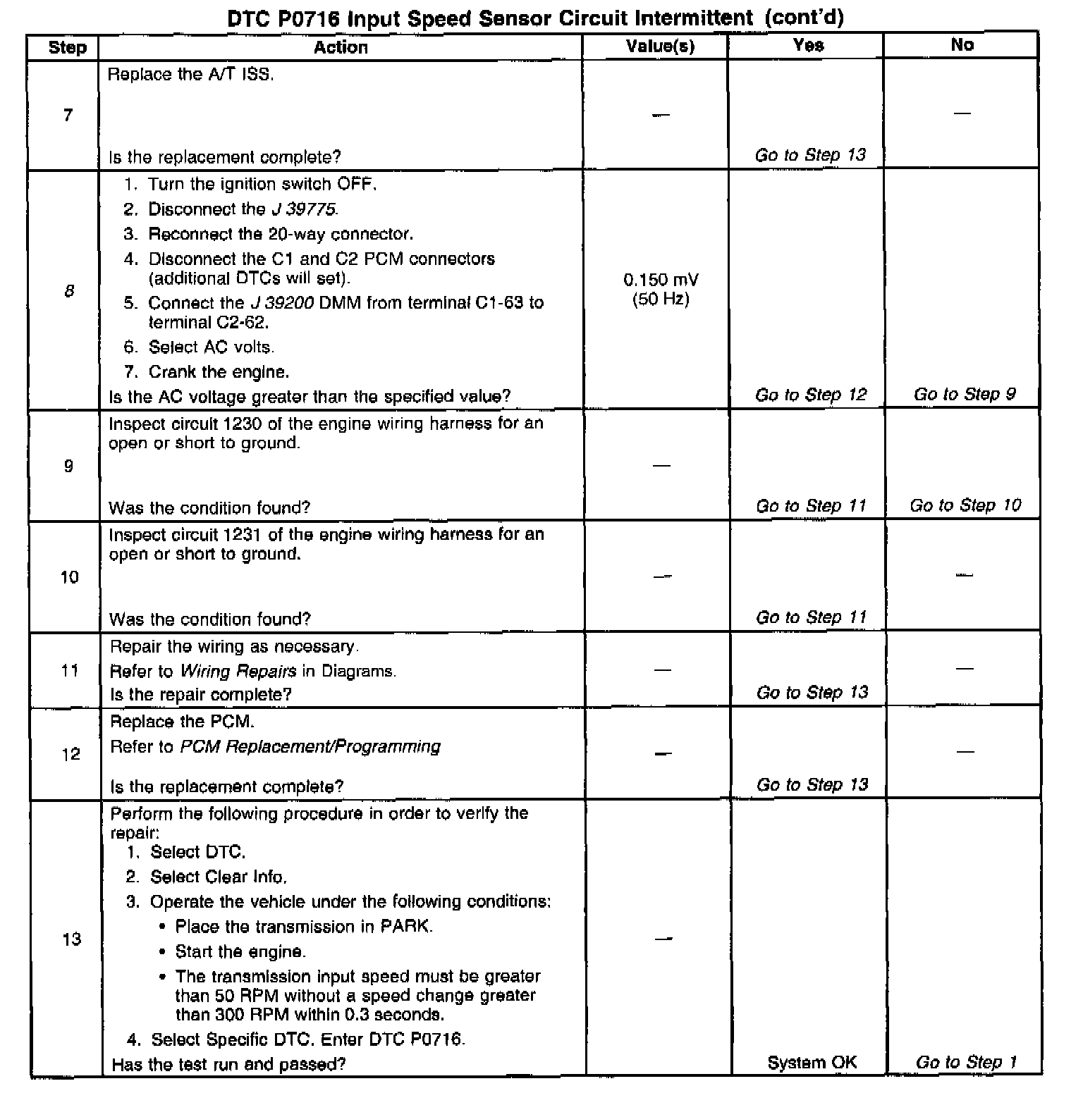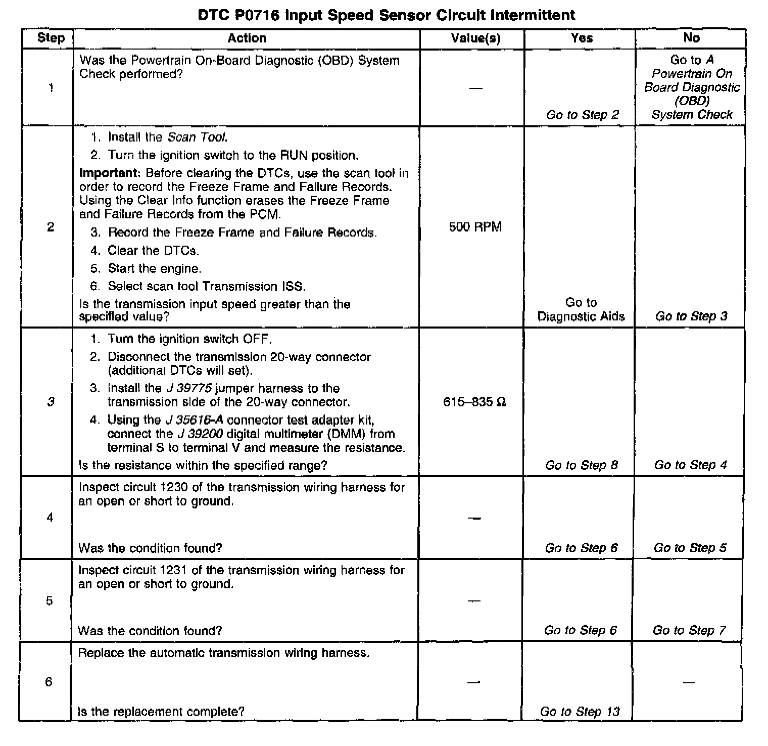 When the PCM detects an unreasonably large change in the input speed, in a very short period of time, then DTC P0716 sets. DTC P0716 is a type B DTC.