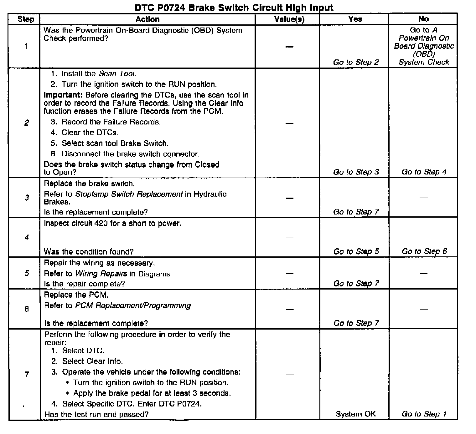 ^ The PCM stores DTC P0724 in PCM history.