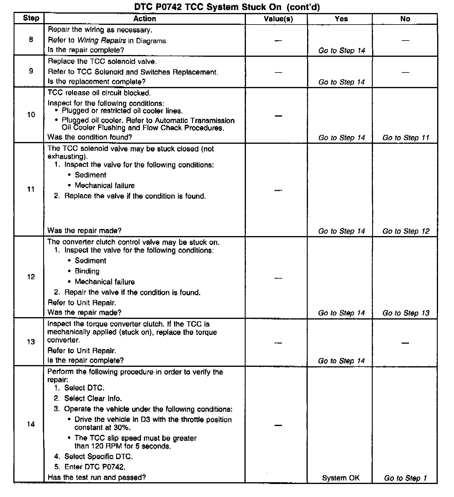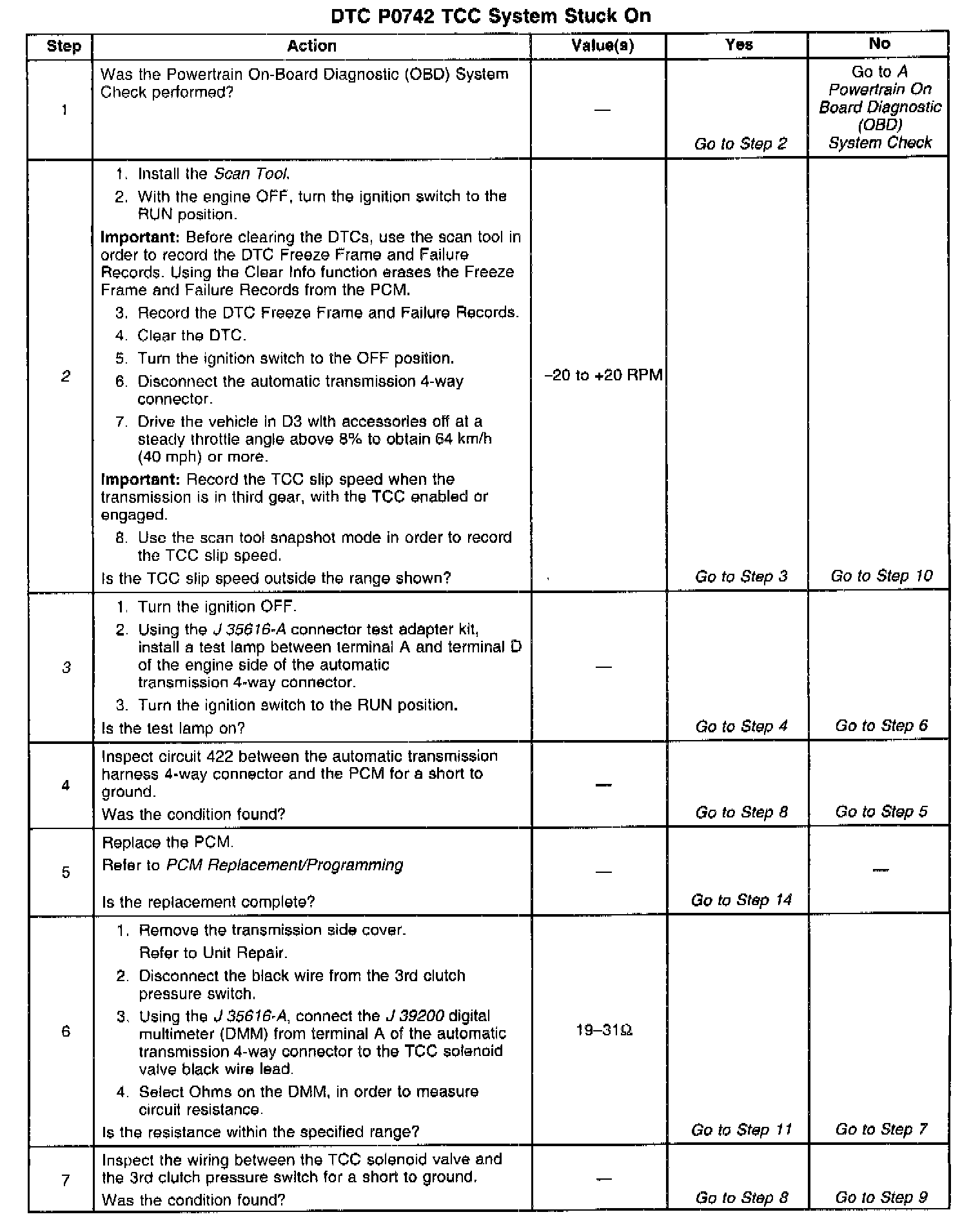 When the PCM detects low TCC slip and the torque converter clutch is commanded off, then DTC P0742 sets. DTC P0742 is a type B DTC.