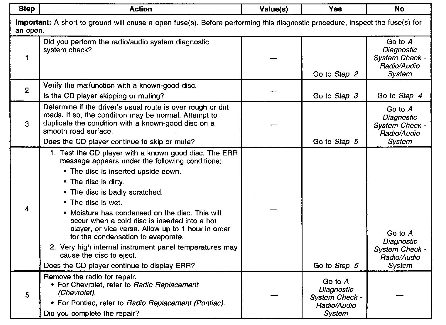 Compact Disc Inoperative:
