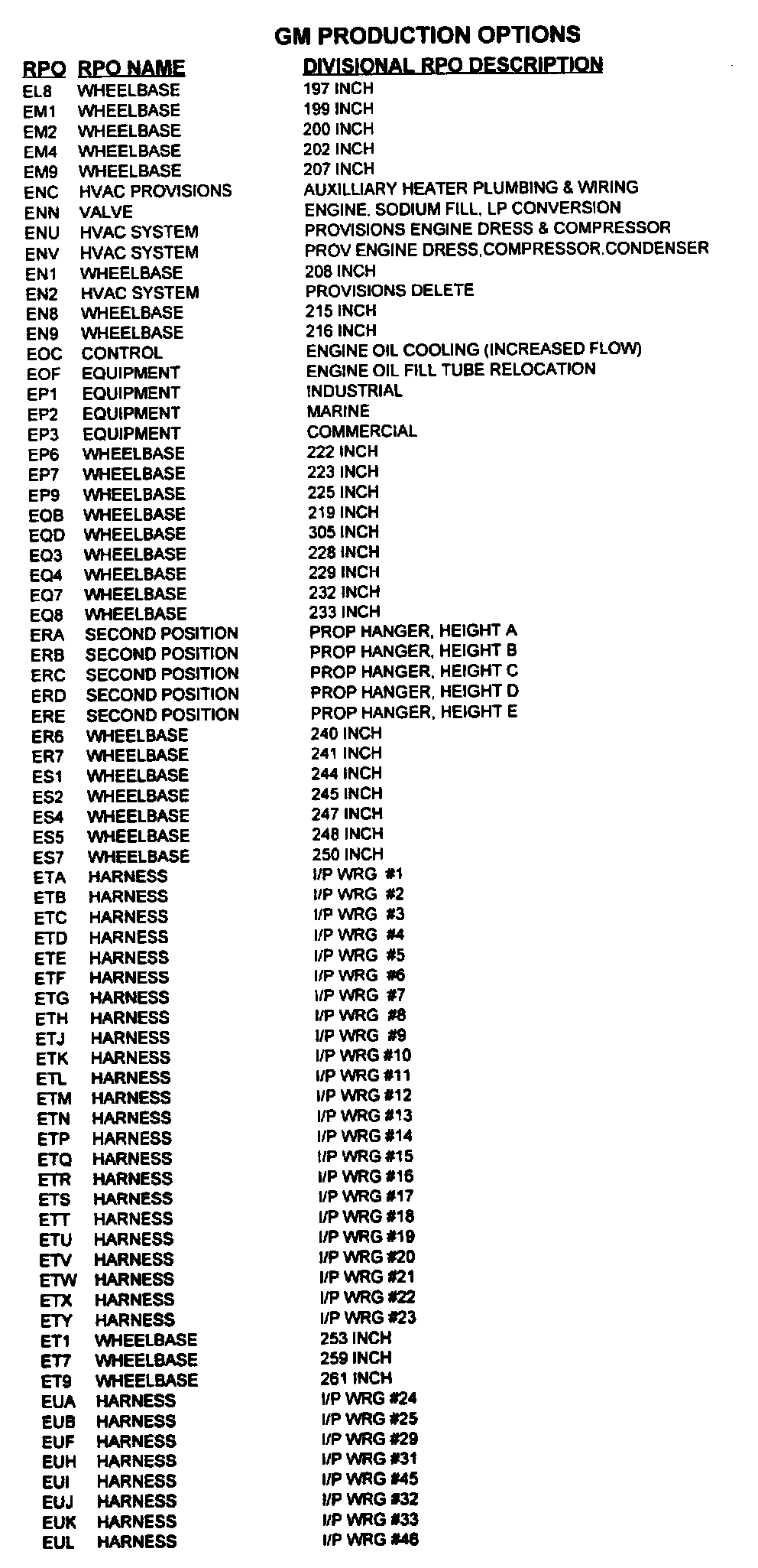 RPO Code List