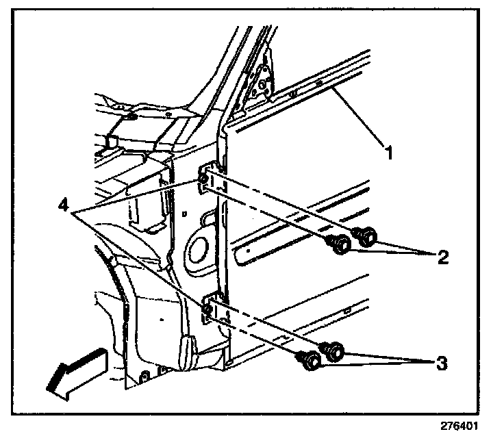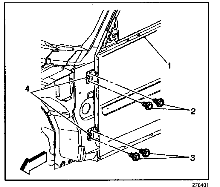 10. Remove the upper hinge bolt and nut from the hinge pillar.