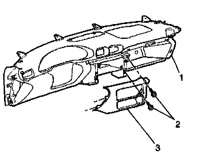 2. Remove the screws (2) from the instrument panel accessory trim plate (1).