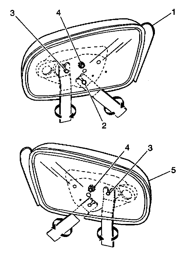 3. Press the mirror glass assembly at the outer jack screw (3) in order to snap the mirror (5) into position.