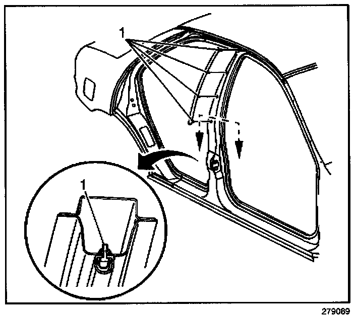 REMOVAL PROCEDURE1. Use a flat-bladed screwdriver in order to disengage the push-pin clips (1).