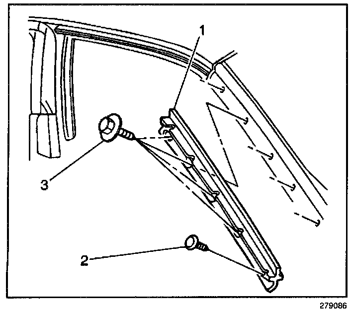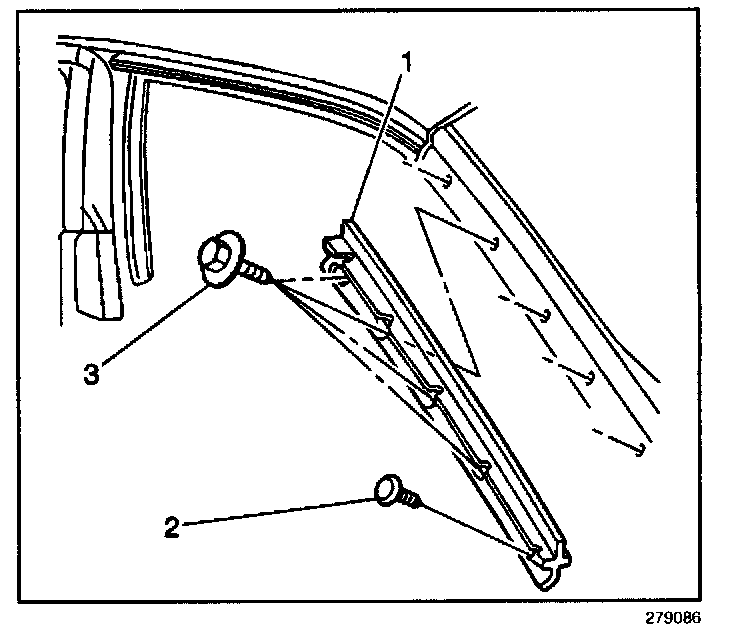 3. Install the bolts (3) to the auxiliary weatherstrip retainer.