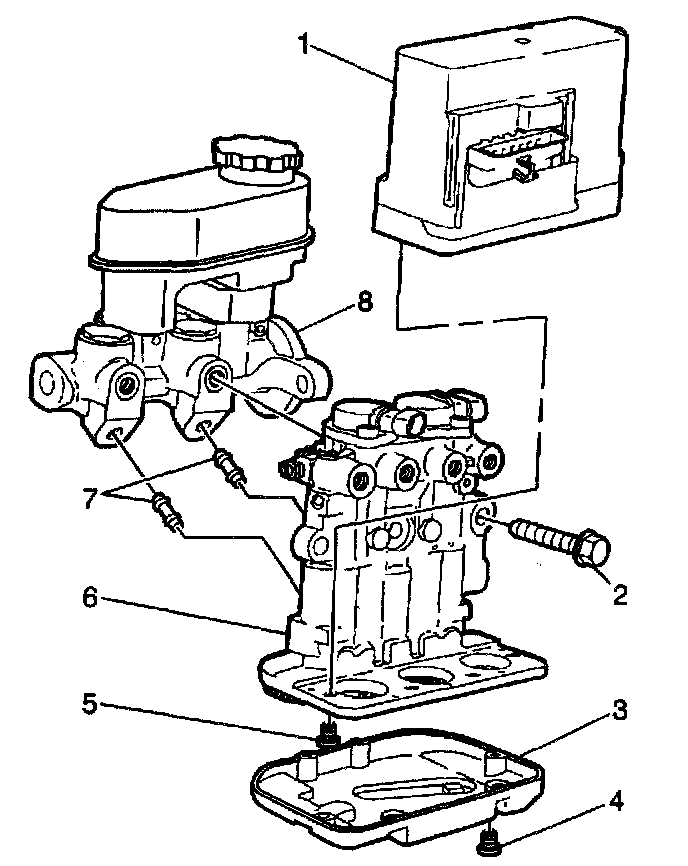 REMOVAL PROCEDUREIMPORTANT: If you were directed to disassemble the modulator/master cylinder because an ABS or ETS hydraulic functional test did not pass, perform the Automated ABS brake motor pack Diagnosis Test. The Automated ABS brake motor pack Diagnosis Test isolates the motor pack or the brake modulator. No repair of the motor pack is authorized. Replace as an assembly.