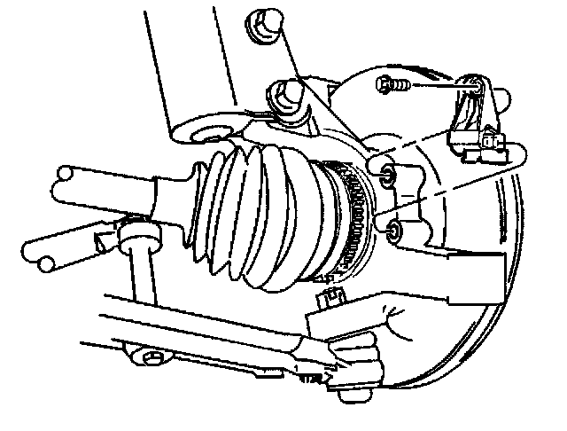 4. Remove the front wheel speed sensor. If the sensor will not slide out of the knuckle, remove the brake rotor and use a blunt punch or equivalent tool in order to push the sensor from the back side of the knuckle.