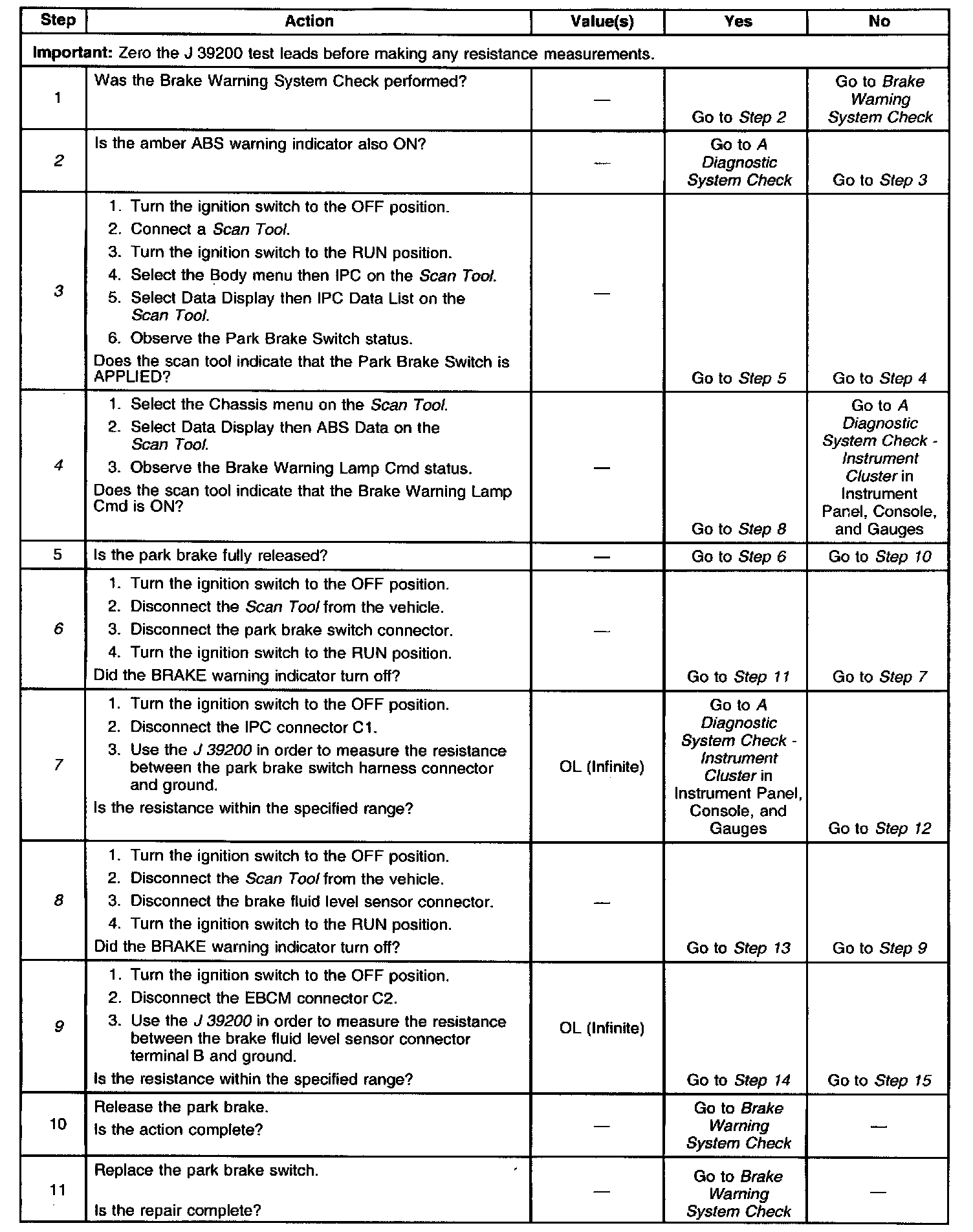 7. This test checks for a short to ground in the park brake switch circuit.